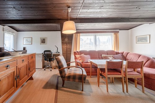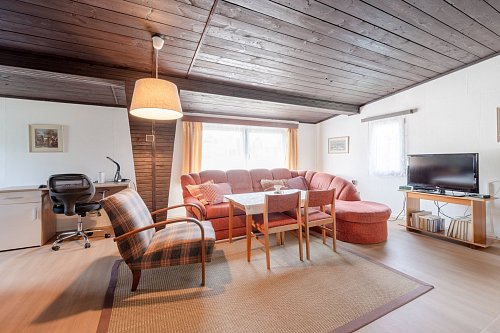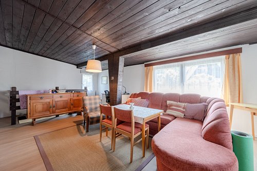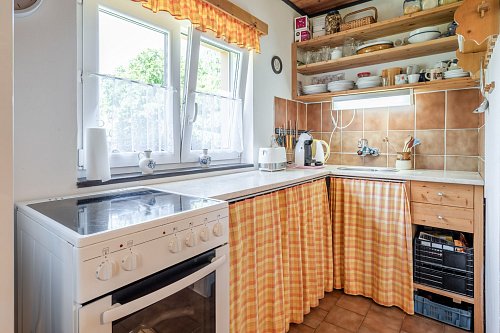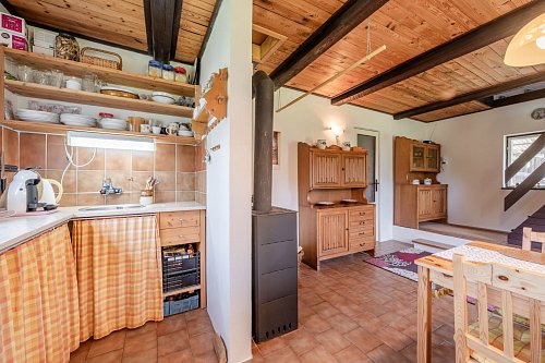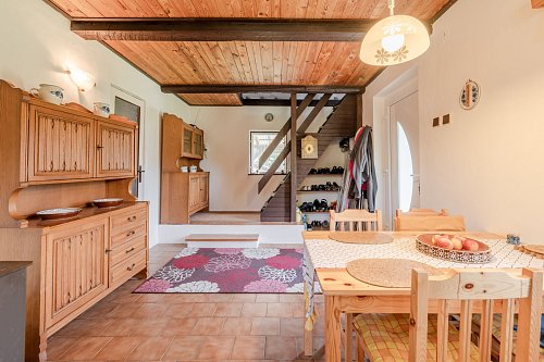 Interiér chaty je prostorný a světlý, s příjemnou atmosférou, která vás okamžitě pohltí. Jídelna s krbovými kamny je perfektní pro rodinné večery, zatímco kuchyňka je vybavena vším potřebným pro přípravu chutných jídel. Chata disponuje také obývacím pokojem v patře a útulnou ložnicí, které zajišťují pohodlný spánek po dni stráveném v přírodě.